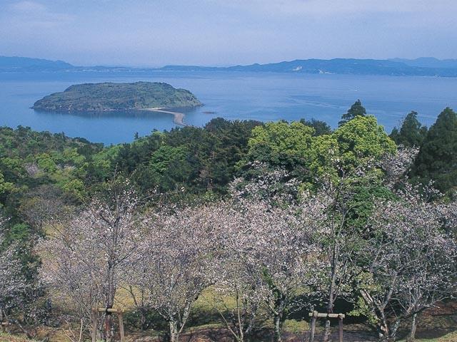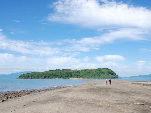 錦江湾に浮かぶ周囲約3kmの無人島。岸から約800m離れているが、3月から10月の大潮または中潮の干潮時に砂州「ちりりんロード」が現れ、岸から歩いて渡れる(くわしくは要問い合わせ)。この砂州が「縁を結ぶ」といわれ、ラブスポットとしても注目を浴びている。2つのオブジェが、ある角度から見るとハート形になる「Chirin’sハート」、鳴らすと願いが叶うという「Chirin’s BELL」などがある。
