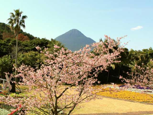 世界各国の植物が楽しめる植物公園。天然の松林に囲まれた地形を生かした36.5haの広大な敷地には、開聞岳を背景にした花広場、鹿児島(錦江)湾を一望する展望回廊、両サイドに壁のないウインドスルーの屋内庭園などがある。