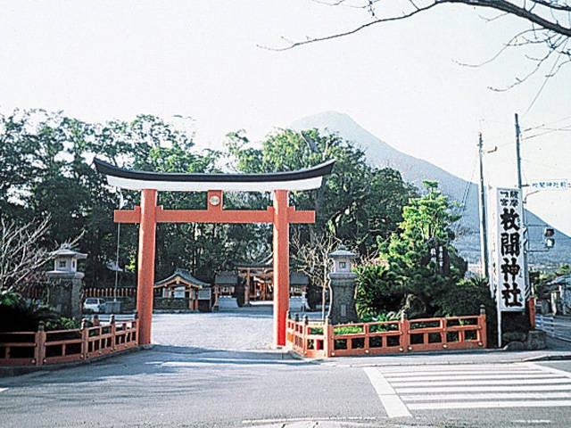 天照大神のほか八柱神を祀る薩摩国一の宮。正面に唐破風の向拝が付いた勅使殿があり、奥には拝殿、幣殿、本殿がある。交通安全、航海安全、漁業の神として崇敬を集める。宝物殿には国の重要文化財である松梅蒔絵櫛笥(まつうめまきえくしげ)、別名「玉手箱」が保管されている。