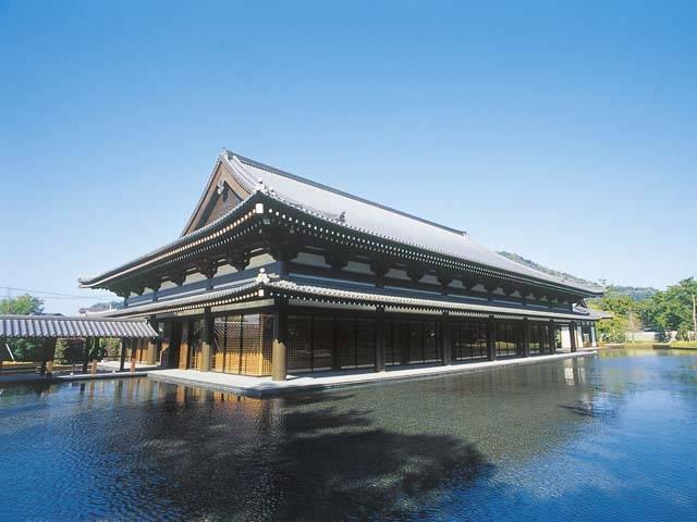 指宿白水館にある多目的ホール。オーナー親子二代でコレクションしたおよそ3000点の美術品が一堂に会し、薩摩金襴手をほどこした薩摩焼など華やかな品々が目を引く。美術館のような顔をもつ一方で、定期的にイベントを行う。