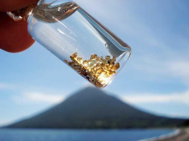 黒い砂浜には、約3700年前の開聞岳の噴火で噴出されたオリビンと呼ばれる宝石が混じっている。隕石に近い成分で「絆の石」とも呼ばれ、「幸福」「夫婦の愛」などの石言葉をもつ。