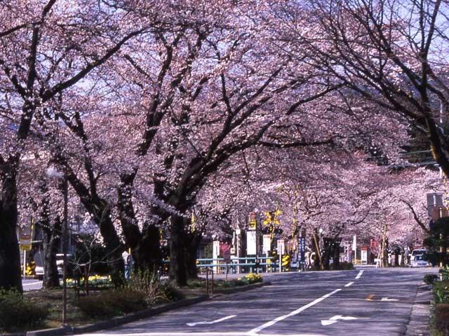 ハミングパル(人形時計台)から大宮神社まで続く桜並木。御衣黄などの珍しい桜もあり、開花時には桜のトンネルが楽しめる。