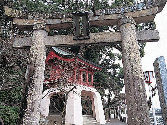 伊万里川そばに建つ。楼門横にある大きな「むすびの大楠」は、縁結びや子宝にご利益があるといわれる。