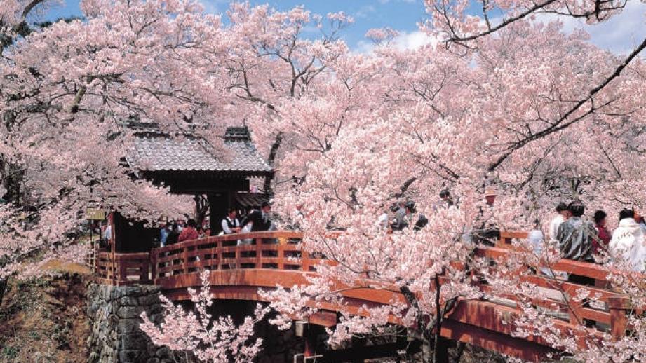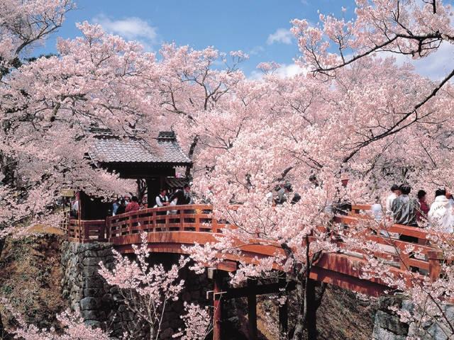 古くから「天下第一の桜」と謳われ、開花時は高遠城址公園全体が薄紅色に染まる。南アルプスを背景に、約1500本のタカトオコヒガンザクラが咲き競う。
