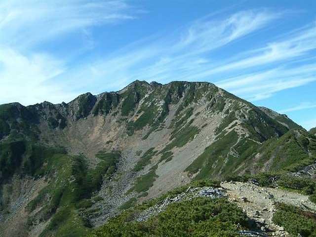 山頂からは南アルプスをはじめ、中央・北アルプスまで望める雄大な眺めを楽しめる。山頂直下には3つのカールがあり、変化に富む風景を楽しめる。冬期は藪沢ルートからの入山は不可。