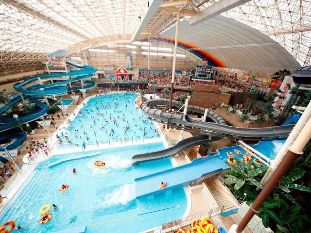 常夏ムードのウォーターパークや江戸情緒あふれる大露天風呂など6つのテーマパークで構成されている。ホテルもあり、温泉、ショー、ショッピング、グルメが楽しめる。