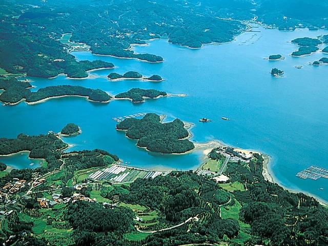 伊万里湾に点在する島々の総称。青い海に浮かぶ弁天島、帆立島など、緑の島々のあまりの美しさに、弘法大師も筆を投げたとも伝わる肥前の代表的な観光スポット。