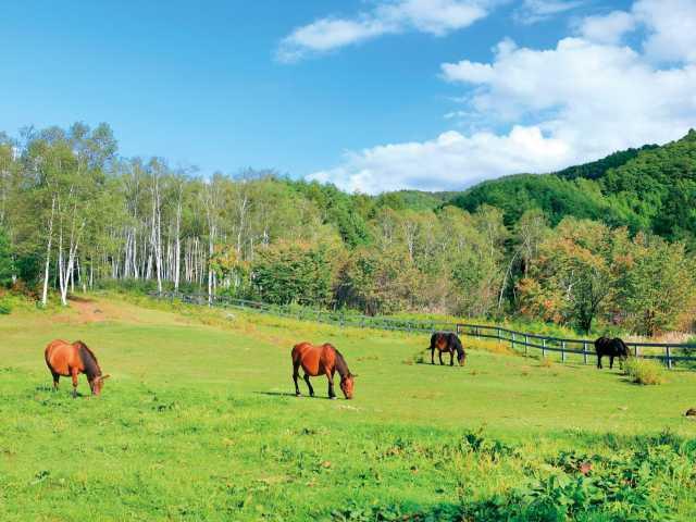 長野県の天然記念物である木曽馬が30頭放牧されており、間近に見ることができる。有料で引き馬や乗馬も体験できる。場内馬場もあるので雨天でも楽しめるのがうれしい。