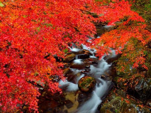 紅葉の名所としても知られている、花園川上流一帯の渓谷。うっそうと茂る樹木と適度な湿気を含んだ空気は、神秘的な雰囲気で自然の宝庫だ。