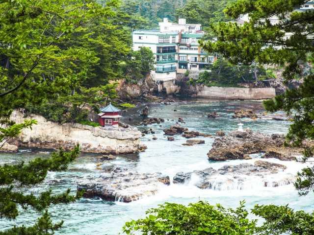 太平洋の荒波が生んだ天然の岩の芸術。海岸から見上げるだけでなく、断崖絶壁の上からの太平洋も見逃せない絶景ポイント。「日本の渚百選」に選定されている。