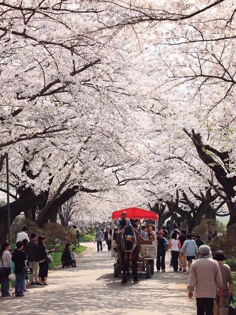 「さくら名所100選」「みちのく三大桜名所」に数えられている公園。樹齢100年を超すソメイヨシノの桜並木は珍しく、圧倒的な存在感だ。2kmほど続くこの桜の回廊のほかにも、293haの園内に約150種約1万本の桜があるといわれ、5月上旬のベニヤマザクラの開花までそれぞれが美しさを競い合う。