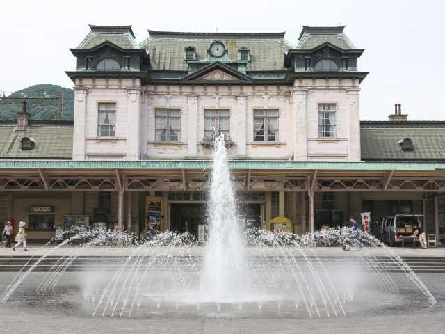 大正3(1914)年に建てられた駅舎で、国の重文。現在、仮駅舎で営業しながら建物の大規模な保存修理工事中。工事中は駅前に設けられた見学デッキから改修の様子を見ることができる。