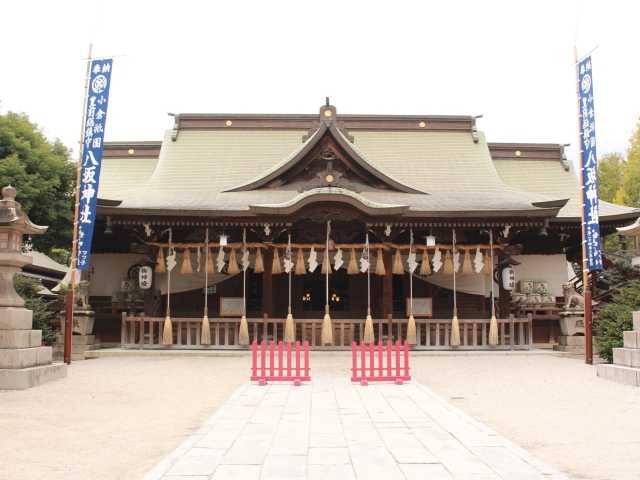 元和3(1617)年、細川忠興が小倉城の鎮守として城郭北西の鋳物師町に創建。昭和9(1934)年に現在地へ遷座した。境内の石造鳥居と二基の石造灯籠は、県の重要文化財。