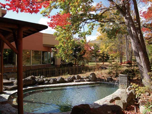 温泉は名前の通り、肌につるつるして柔らかな弱アルカリ性の湯。皮膚病のほかにもリューマチ、神経痛、慢性消化器病にも良い。木々に囲まれた露天風呂は身も心も癒される。