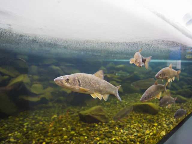 日本初の「滝つぼを見上げる水槽」を備えた、主に淡水魚を展示する水族館。世界初という「川が凍る水槽」などもあり、自然に近い状態で魚の生態を観察できる。