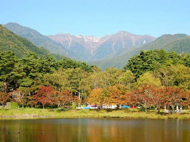 周囲600mほどの人造湖。池のほとりから眺める、中央アルプス、南アルプスも絶景で、撮影やスケッチポイントとしても人気。