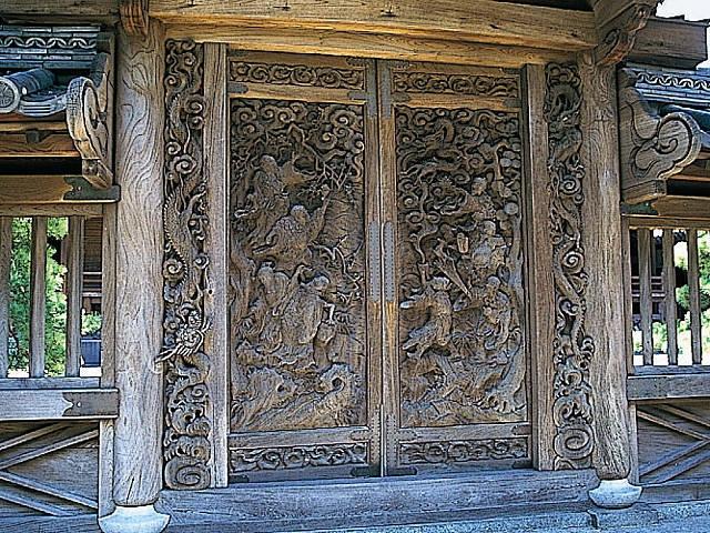 元久元(1204)年に創建されたと伝えられ、「九州の日光」と称される美しい寺。本堂内部は、朱・緑青・金泥のきらびやかな彩色がほどこされている。本堂内部は見学不可。