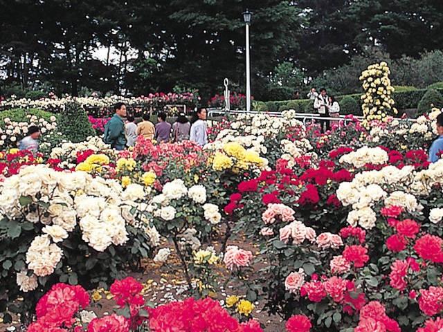 5月中旬から6月上旬、10月中旬から11月上旬と、年に2回見ごろを迎える、敷島公園内にあるバラ園。600種7000株あまりのバラが咲き、訪れた人の目を楽しませてくれる。