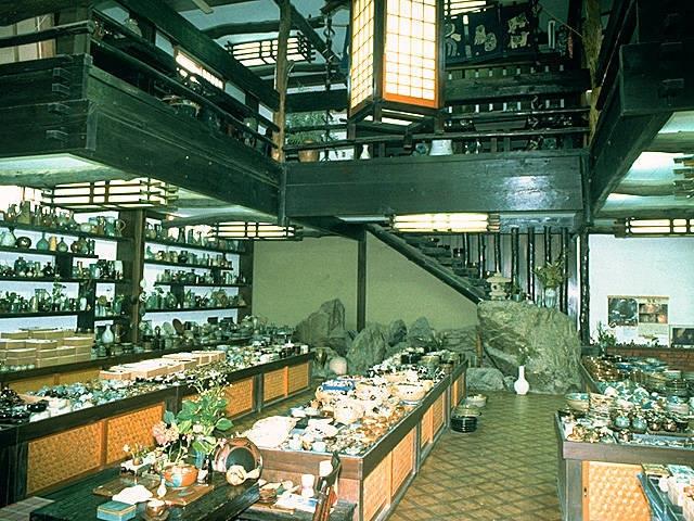 店舗裏に登り窯と作業場を持つ。古い農家風の店内には、黒に柿色、益子の土、釉薬、窯で焼きあげた、正統派の益子焼が並ぶ。画家・山下清、写真家・土門拳らも訪れた。