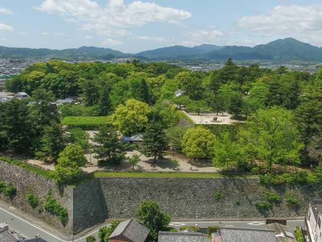 誇らしげにそびえ立つ石垣は、日本百名城のひとつで、松阪のシンボルとなっている。桜や藤、銀杏が石垣を彩り、四季を通じて市民に親しまれている。城跡からは城下町の面影を残す町並みを一望できる。国指定史跡。