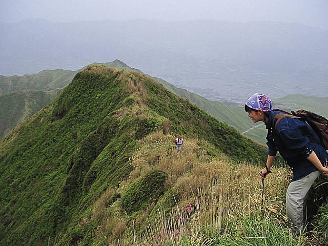 標高1337mを誇る阿蘇五岳の一つ。山麓には草千里ヶ浜が広がり、夏は深緑に覆われる。トレッキングルートがあり、山頂部は一帯の風景を見渡す大パノラマが展開している。