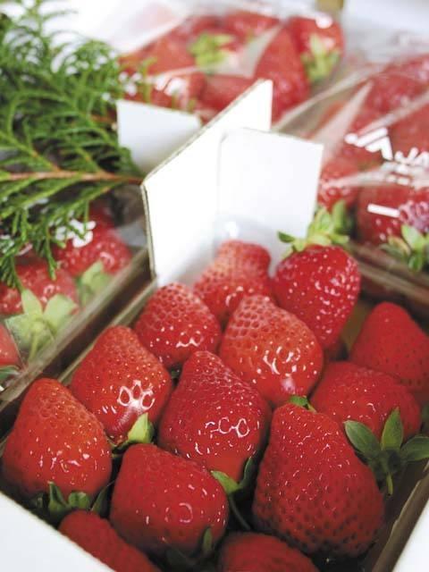 - いちご狩り食べ放題コース(12月)=大人1700円、小学生1200円、3歳以上700円、時期により異なる/摘み取りコース=170~200円(100g)/