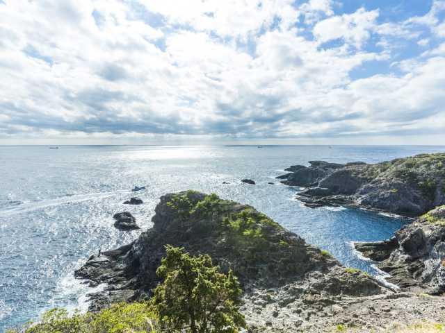 伊豆半島の最南端に位置する岬で、高さ50~100mの断崖絶壁には黒潮が激しく打ち付ける。大海原を一望する「石廊埼灯台」や、船乗りの守護神「石室神社」がある。