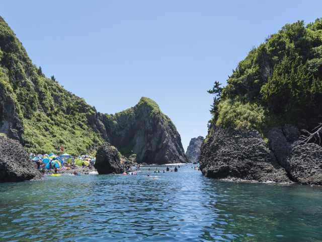 江戸時代には、風待ち港として栄え、現在は民宿の集まる半農半漁の集落。港では、春と秋に「海のバーベキュー」を実施する。夏は海に浮かぶ遊具で楽しむ「海上アスレチック」が評判だ。