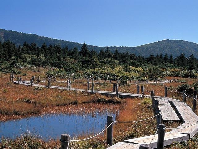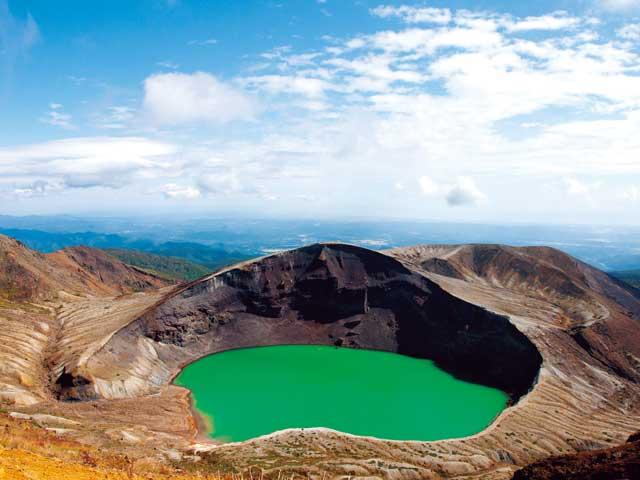 宮城から山形にかけ山々が連なる蔵王。広大な高原地は高山植物も多く、山に囲まれた雄大な自然の景観が楽しめる。シンボルであるエメラルドグリーンの火口湖、御釜など多くの名所がある。