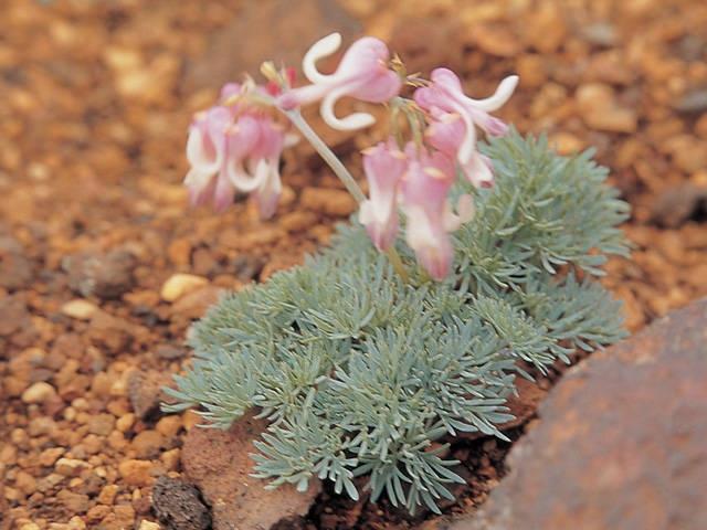 高山植物の宝庫として知られる蔵王。駒草平では溶岩礫の荒地のところどころに「高山植物の女王」コマクサの群生がみられる。7月下旬~8月上旬に、ピンク色の小さく可憐な花が咲く。