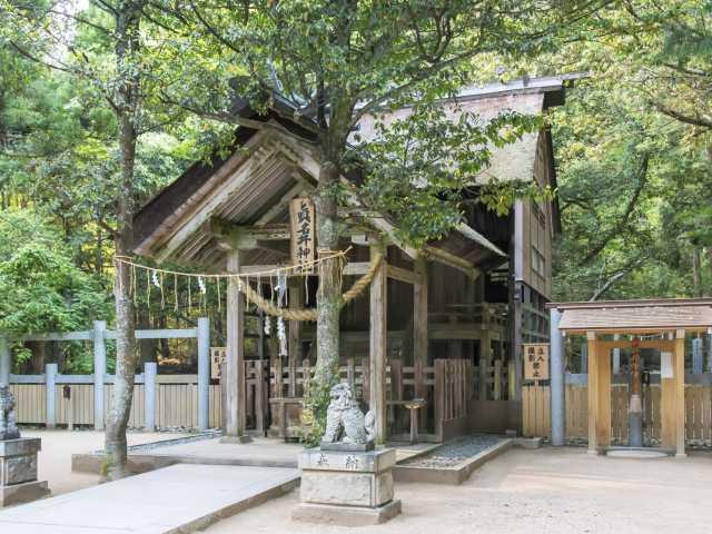 後方にそびえる御神山を少し登ったところにある、元伊勢籠神社の奥宮。社殿の裏手には、約2500年以上もの昔からそのままの姿が残る古代の祭祀場・磐座がある。