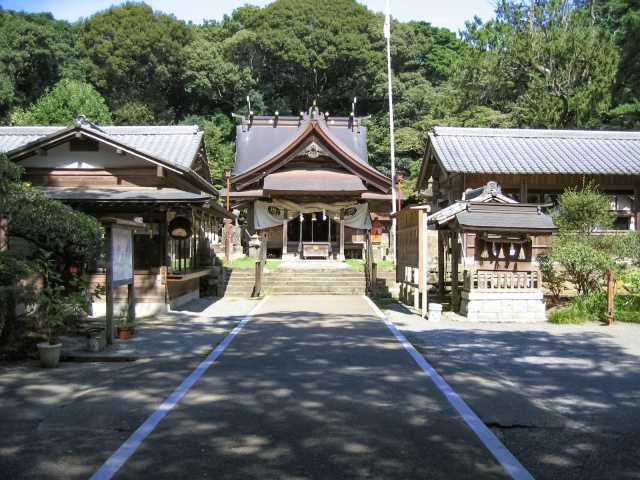 祭神はイザナギノミコトなど四夫婦八神。神武天皇東征のおりに、この神々が赤馬に乗ってあらわれ、道案内をしたという伝説が残る。例年行われている秋季例大祭では、約200年の伝統を持つ古武大名行列が22時から翌日深夜2時まで行われる。