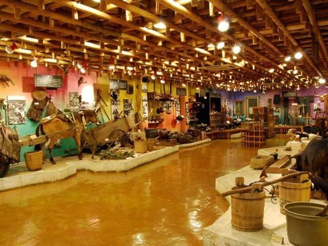 琉球漆器やシーサー、機織り機、琉球創作人形など、沖縄の工芸品や民具が並ぶ。見どころは人間国宝、金城次郎の作品などを展示した陶器コーナー。