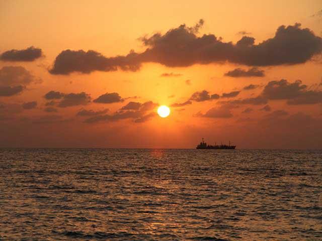 国道58号を道の駅 許田へ向かって行く途中、サンセットの時間に合えばぜひ立ち寄りたい夕日スポット。まるで海に溶けていくような美しい光景にうっとり。