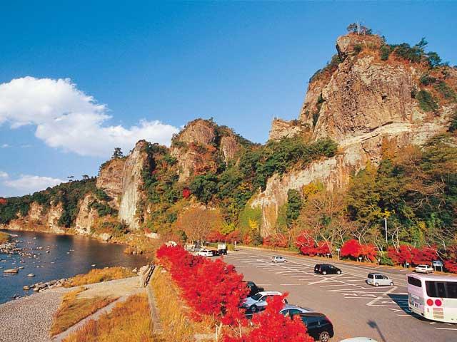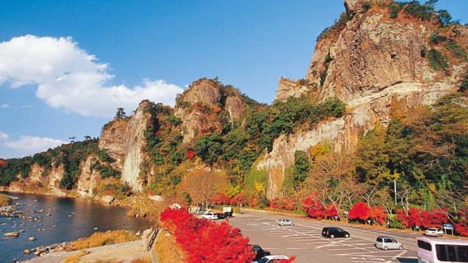 山国川上流部、渓流沿いに奇岩や秀峰の素晴らしい景観が広がる耶馬溪。青の洞門や競秀峰など見どころも多く、紅葉の名所として有名。さらに深耶馬溪、奥耶馬溪へと続く。