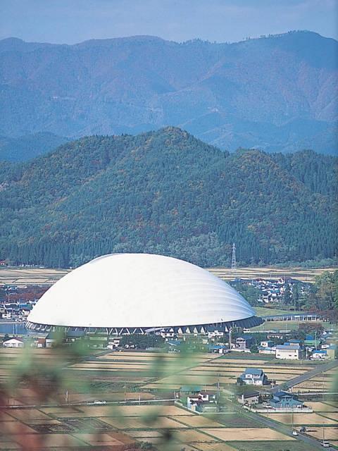 秋田杉を使った珍しい木造ドームで、林業が盛んな大館らしい施設。ドーム内は、野球をはじめ様々なスポーツイベント施設として利用されている。