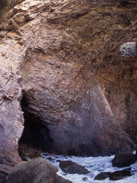 海に向けて大きく穴が開いている洞窟は、男鹿半島の西海岸に点在する洞窟のなかでも最大級の大きさ。中に入ると、波の打ち寄せる音が洞内に響き、不思議な世界をつくり出している。
