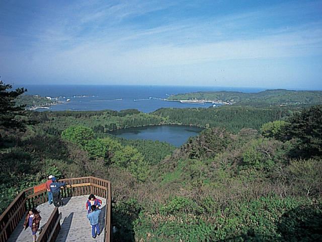 遠くは奥羽山脈まで八方を見渡せる男鹿屈指の展望台。全国的にも珍しい爆裂火口湖の一ノ目潟、戸賀湾、二ノ目潟を眼下に見下ろすことができ、広々とした景色が楽しめる。