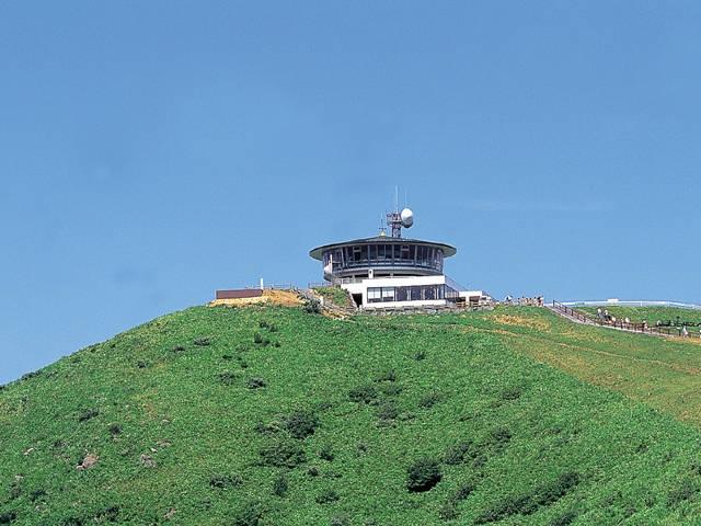 山全体が美しい緑の芝生に覆われた標高355mの寒風山は男鹿半島のランドマーク。山頂の回転展望台に上がれば360度の大パノラマを楽しめ、遠く鳥海山までも一望できる。