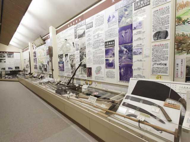 奥出雲町のたたら製鉄を展示と映像で紹介。日本で唯一操業されている日刀保たたらについて映像とパネル資料で紹介。実物大のたたら炉の断面模型と、体験できる3台の吹子は必見。定期的に地元刀匠による鍛錬実験を公開している。