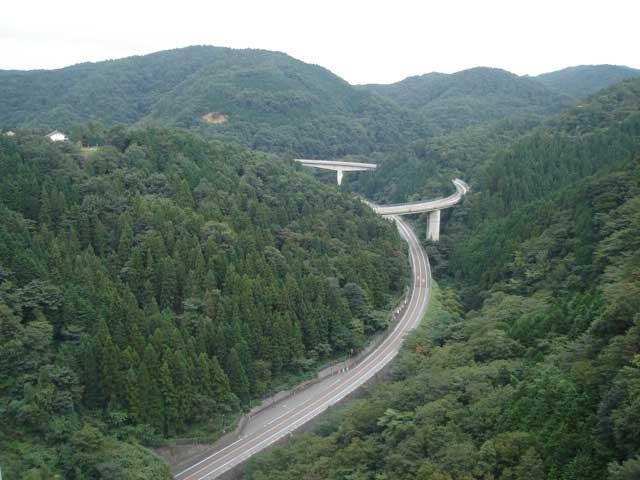 横田町坂根と三井野原間を結ぶ2重ループ式道路で、国道314号の難所。約170mもの高低差を橋とトンネルでクリアするさまは名前どおり、とぐろを巻く八俣の大蛇を彷彿させる。