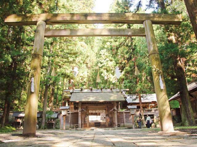 平安末期にこの地にあった、伊勢神宮の仁科御厨(荘園)を守るために創建された神社。日本で最も古いといわれる神社建築・神明造りの様式を今に伝えている。秋の例祭には神楽の奉納も。