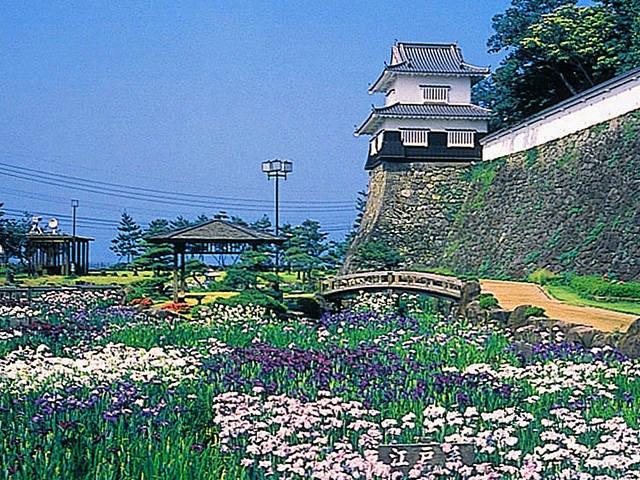 慶長4(1599)年に初代藩主大村喜前が築城。城跡は花の公園として整備され、春は天然記念物のオオムラザクラをはじめ2000本ほどの桜が咲き、5月下旬は花ショウブが美しい。