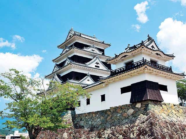 大洲城は藤堂高虎、脇坂安治によって城郭が整備され、廃藩まで大洲藩加藤家13代の居城だった。写真などの史料をもとに復元された天守閣は、木造4層4階建てで19.15mの高さがある。