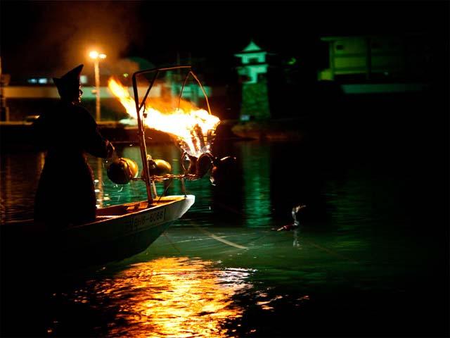 日本三大鵜飼のひとつで、6月1日の鮎解禁日から肱川で行われる。鵜匠が操る鵜が鮎を見つけ、くわえては顔を出すようすを見ることができる。5羽の鵜を操る鵜匠の見事な手綱さばきは必見。