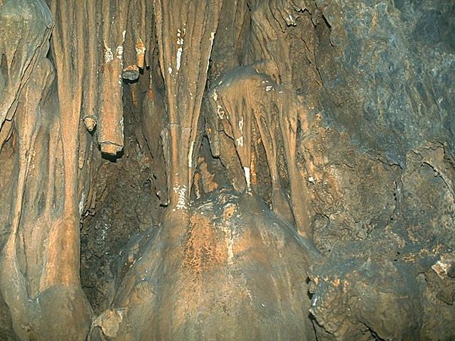 佐野坂東32番の札所でもある全長100mの洞窟。古代の紡鍾虫の化石フズリナや、如意輪観音に似た石灰石がある。鍾乳洞の中は黄土色一色の乳石や石筍が伸びており見事だ。