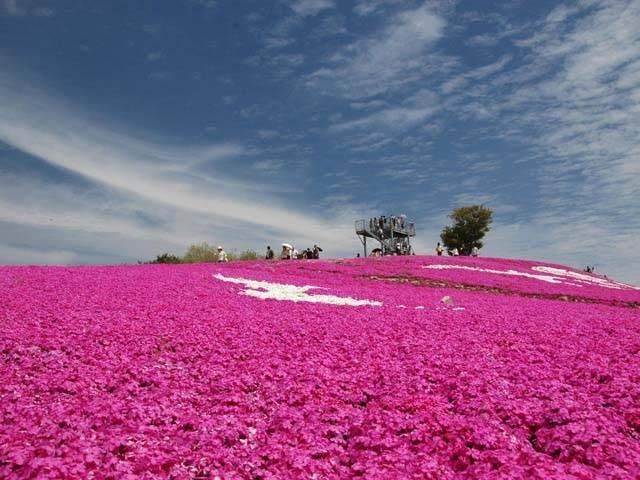 西日本最大級の丘を、鮮やかな青が彩る。丘一面に約100万本のネモフィラと、45万株の芝桜が美しく咲き誇る。