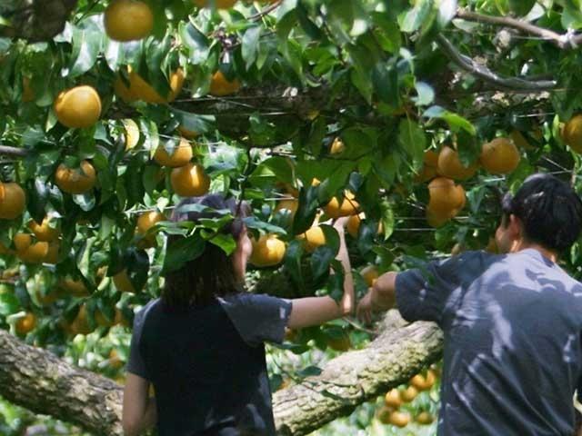 無袋で栽培された梨狩りが食べ放題で楽しめる観光農園。ぶどうの味覚狩りもできる。9月には大道芸やコンサートなどイベントも開催。