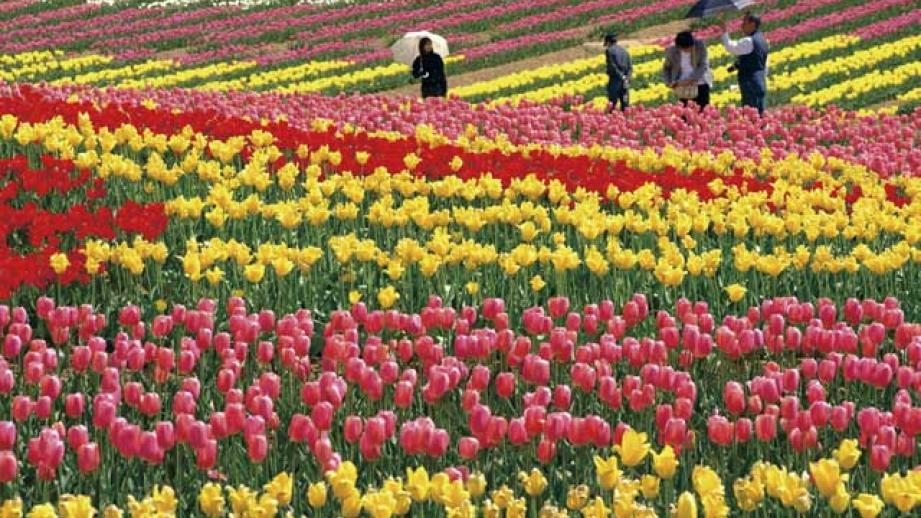 春には約300品種、70万本のチューリップ、夏には100万本のヒマワリが咲く。秋には約400品種2万5000株のダリア園として開園。収穫祭ではジャンボサイズの大根がとれる。
