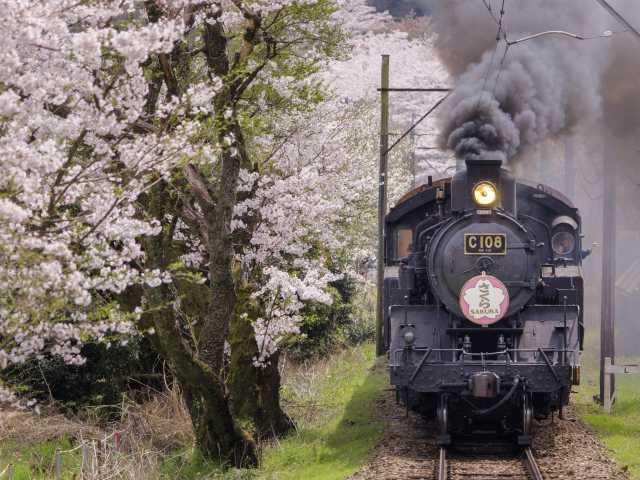 大井川鉄道沿いに3月下旬から4月上旬に見られる桜のトンネル。道路の両脇にある約280本のソメイヨシノが春になると一斉に咲き乱れ、優美な桜のトンネルをつくり上げる。桜並木のすぐ脇をSLが走っていく場面に出会えれば、感動もひとしお。開花に合わせ「かわね桜まつり」も開催される。